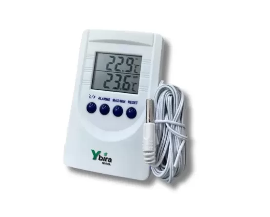 O visor digital do termômetro YB-200 exibe a temperatura em tempo real, com números grandes e de fácil leitura. Isso possibilita a tomada de decisões rápidas em caso de oscilações térmicas indesejadas, ajudando a manter a integridade dos itens armazenados.
