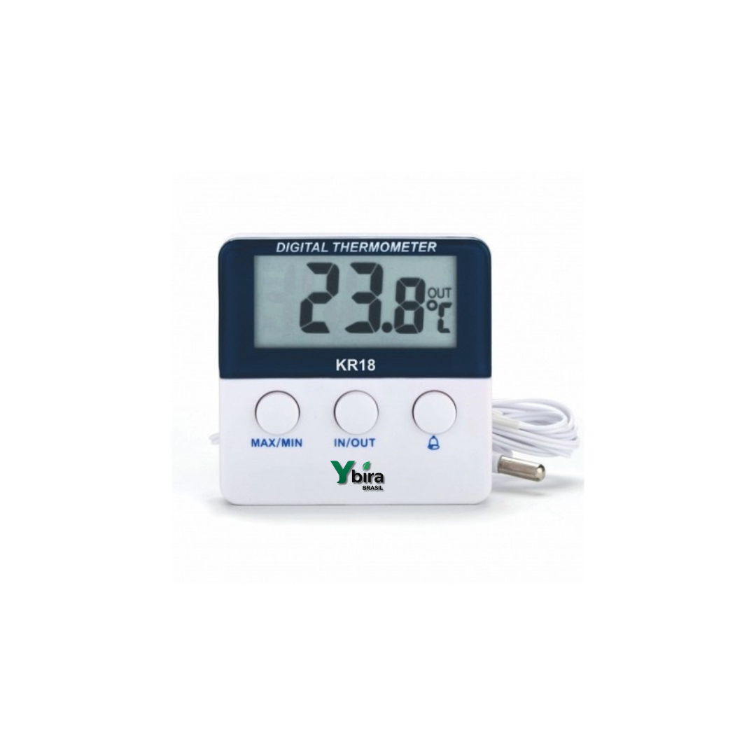 O visor digital do termômetro YB-18 exibe a temperatura em tempo real, com números grandes e de fácil leitura. Isso possibilita a tomada de decisões rápidas em caso de oscilações térmicas indesejadas, ajudando a manter a integridade dos itens armazenados.