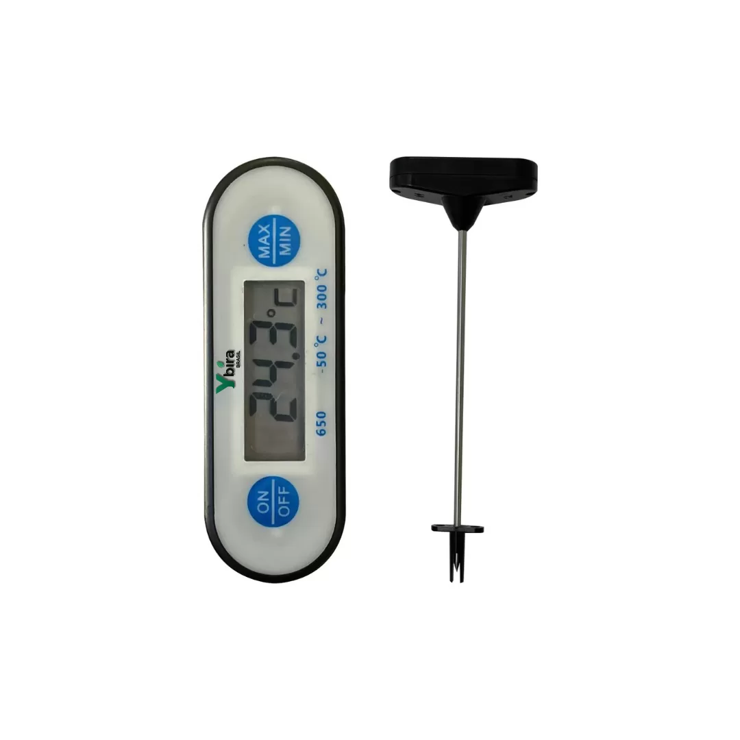 O termômetro de espeto 650 é um instrumento digital portátil, ideal para medições rápidas e precisas de temperatura em alimentos e líquidos. Com isso, ele se destaca como uma solução eficaz tanto para uso profissional quanto doméstico. Devido ao seu design compacto e funcional, o modelo 650 é amplamente utilizado em cozinhas industriais, restaurantes, laboratórios de controle de qualidade e também em residências que exigem um monitoramento confiável da temperatura.